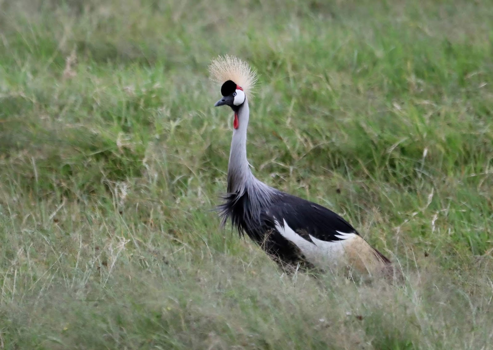 La grulla coronada cuelligrís es un ave gruiforme de la familia Gruidae. Habita comúnmente en la sabana africana al sur del Sahara, aunque suele anidar en hábitats más húmedos. Sus grandes manchas alares blancas sobre el plumaje gris son visibles durante el vuelo y la exhibición.